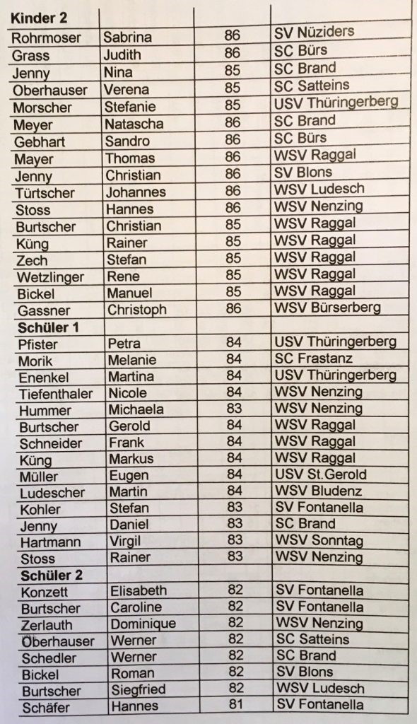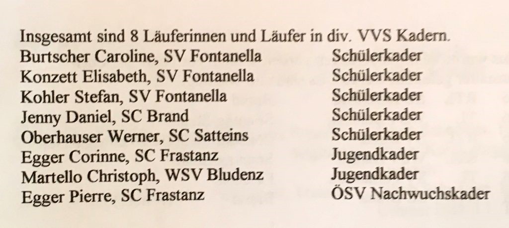 – Erstellung eines Kaders mit einer Größe von 20 bis 30 Rennläufern mit dem Schwerpunkt Kinder Brandnertal und Großes Walsertal